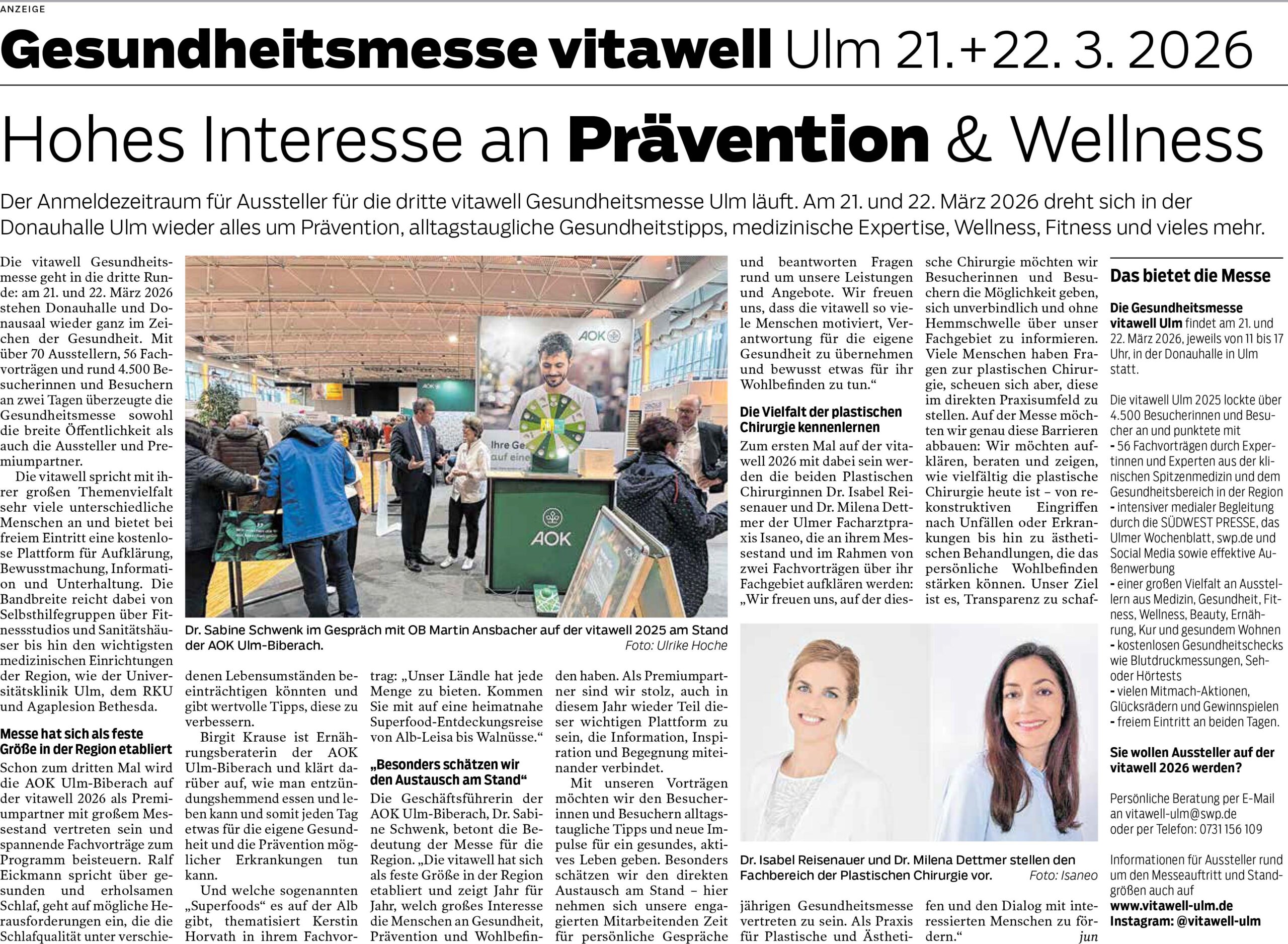 04 Nov. Südwest Presse: vitawell Gesundheitsmesse Ulm 2026